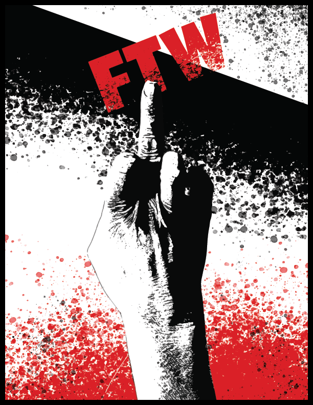 Here are just a few commissioned t-shirts I’ve designed. Be warned, the last example may offend. The client wanted FTW in the style of a Rancid album cover, “And Out Come the Wolves.” He was specific about the image he wanted and he paid good money. I wouldn’t wear it but he says it’s selling and his friends in Japan love it.